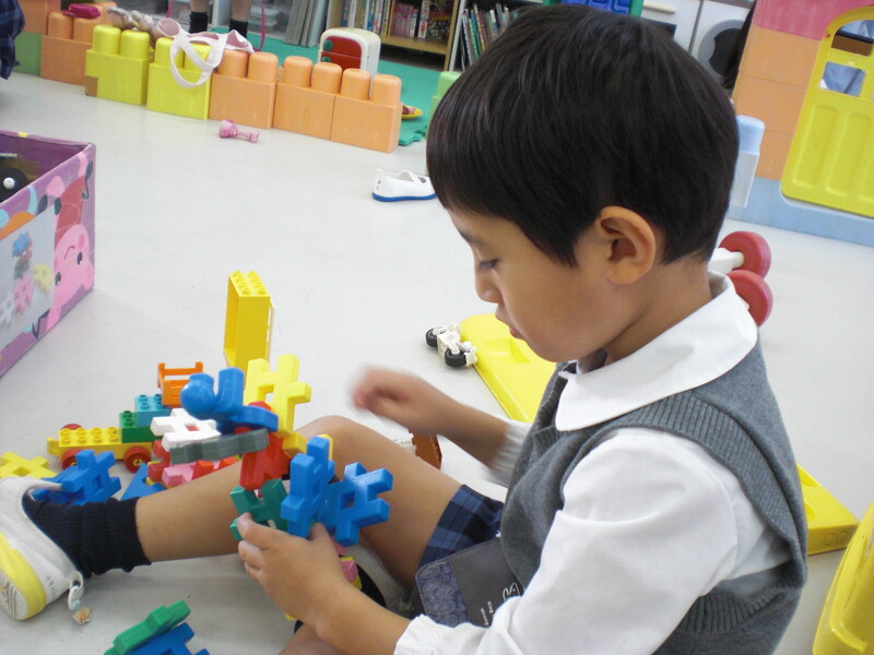 おうちごっこをする子ども達やブロックや塗り絵をする子ども達。