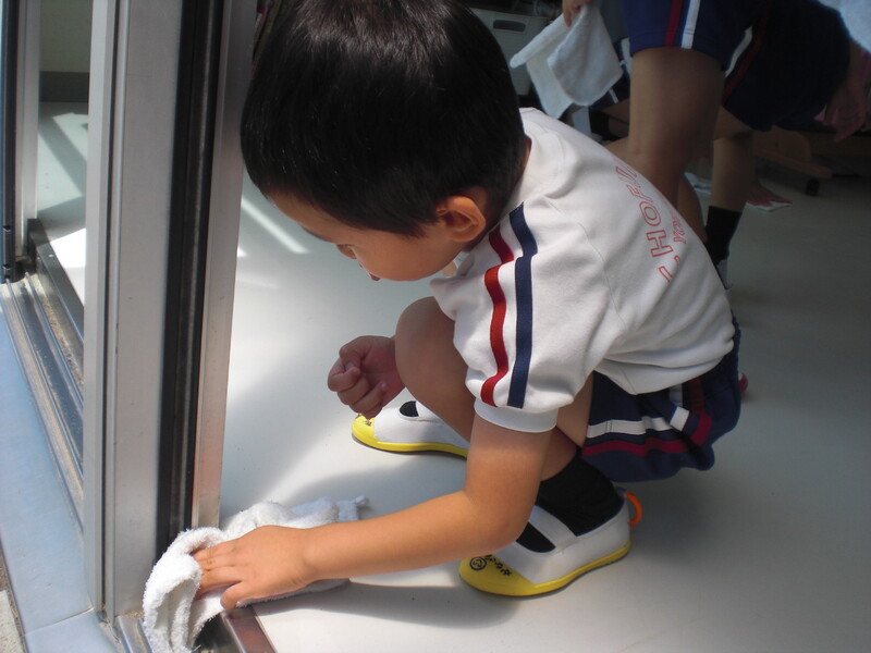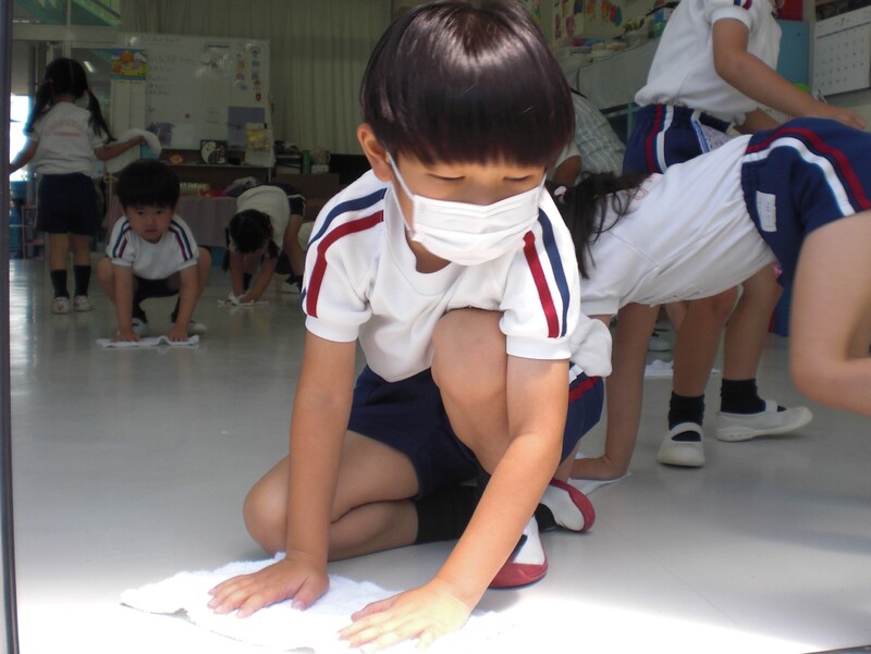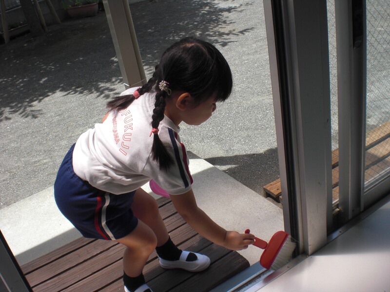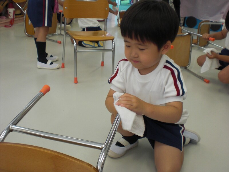 自分の椅子をきれいに拭いたり、床の隅々まで小さなほうきで掃いたり・・・。
