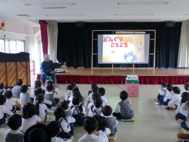 お話「どんぐりころころ」「ももたろう」の読み聞かせをしてくださいました。