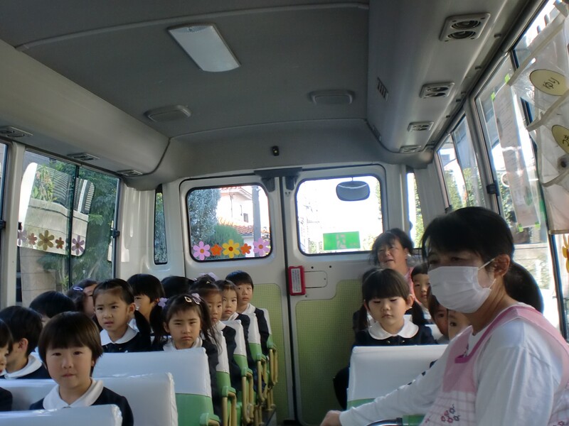 第二幼稚園のバスに乗り、お寺にいきました。
