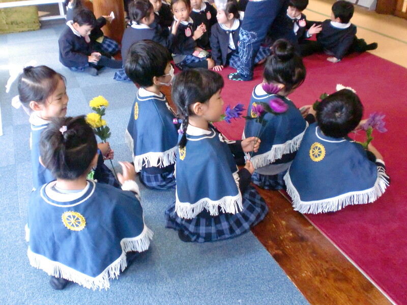 献花をしてくれるお友達。