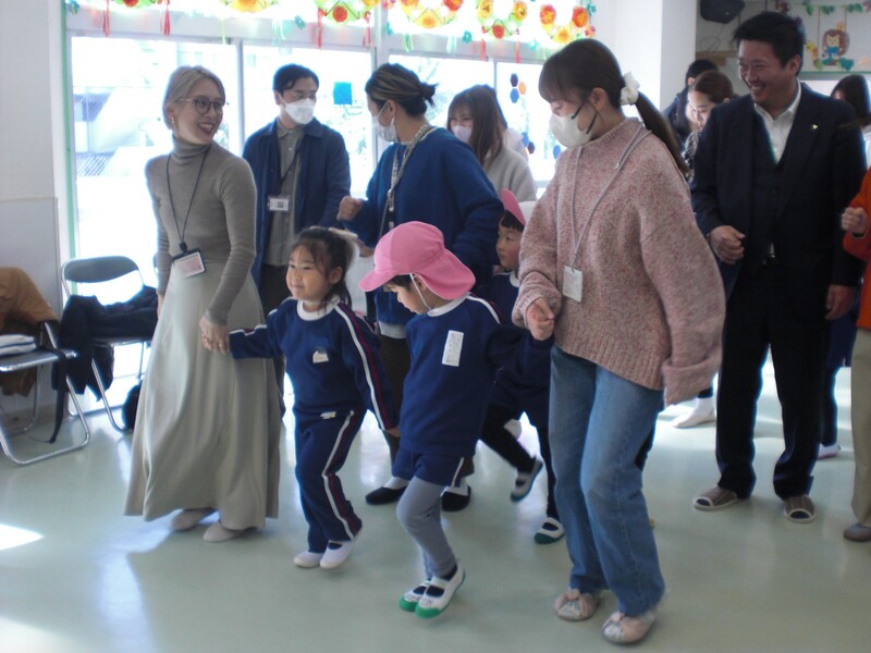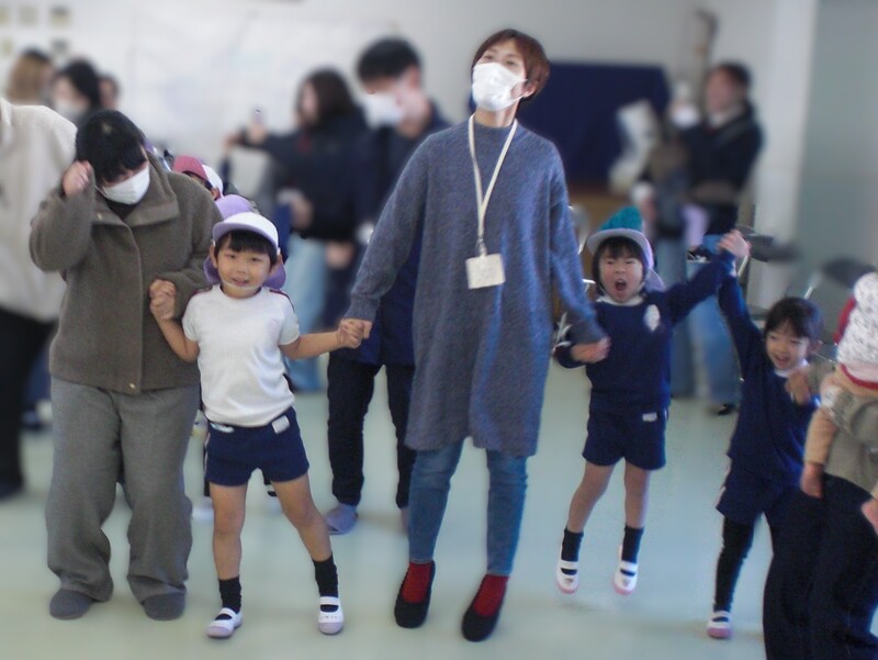 年中組2クラス合同の保育参観がありました。園庭で保護者の方に平本先生の体操指導を見学していただきました。その後、ホールで親子でゲームをし、歌を聴いてもらいました。少しの時間でしたが普段の体操指導や園での様子、子ども達の成長を見ていただき、親子一緒に楽しい時を過ごしていただけたことでしょう。