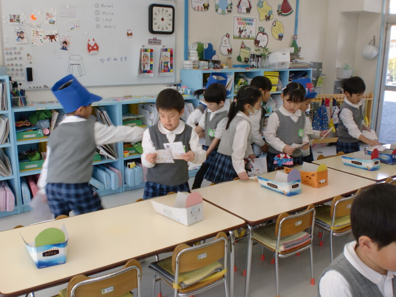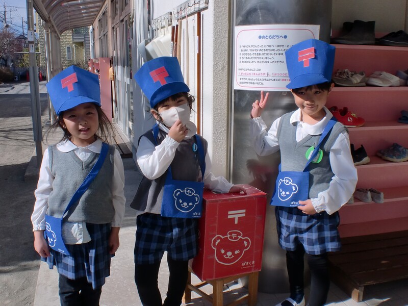 1月。幼稚園では、郵便屋さんごっこをしました。