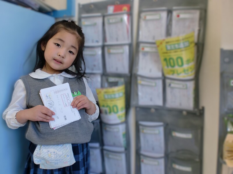 年長組のお友達が葉書回収から配達までをします。