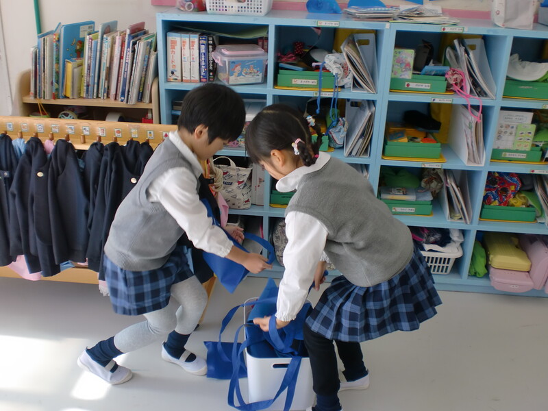 年中組・年少組・満3歳児に「ありがとうございます。」と言われて、とても嬉しそうな年長組でした。